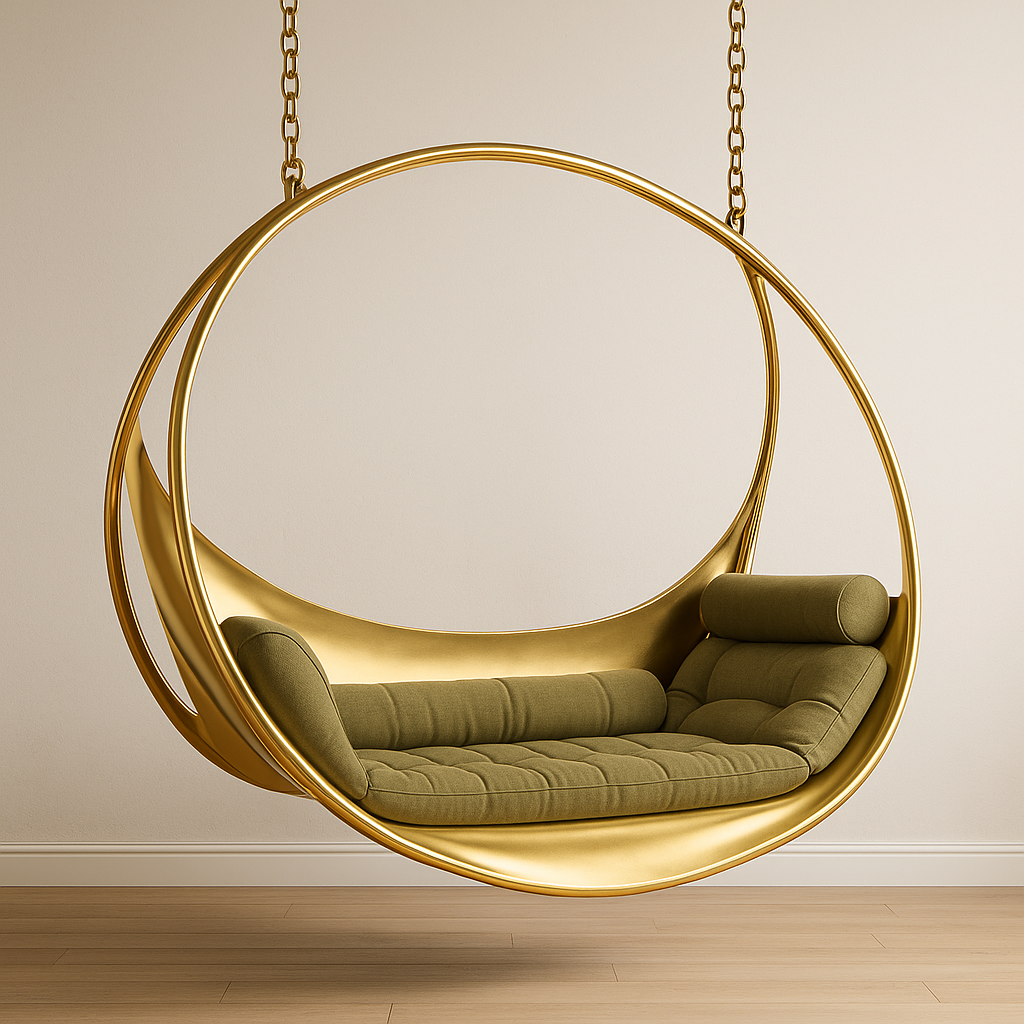 Tranquil Veil Hanging Swing with Cushions – 48-Inch Luxury Stainless Steel Jhula for Balcony or Living Room (48x24x48")