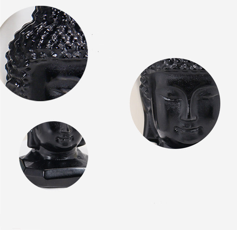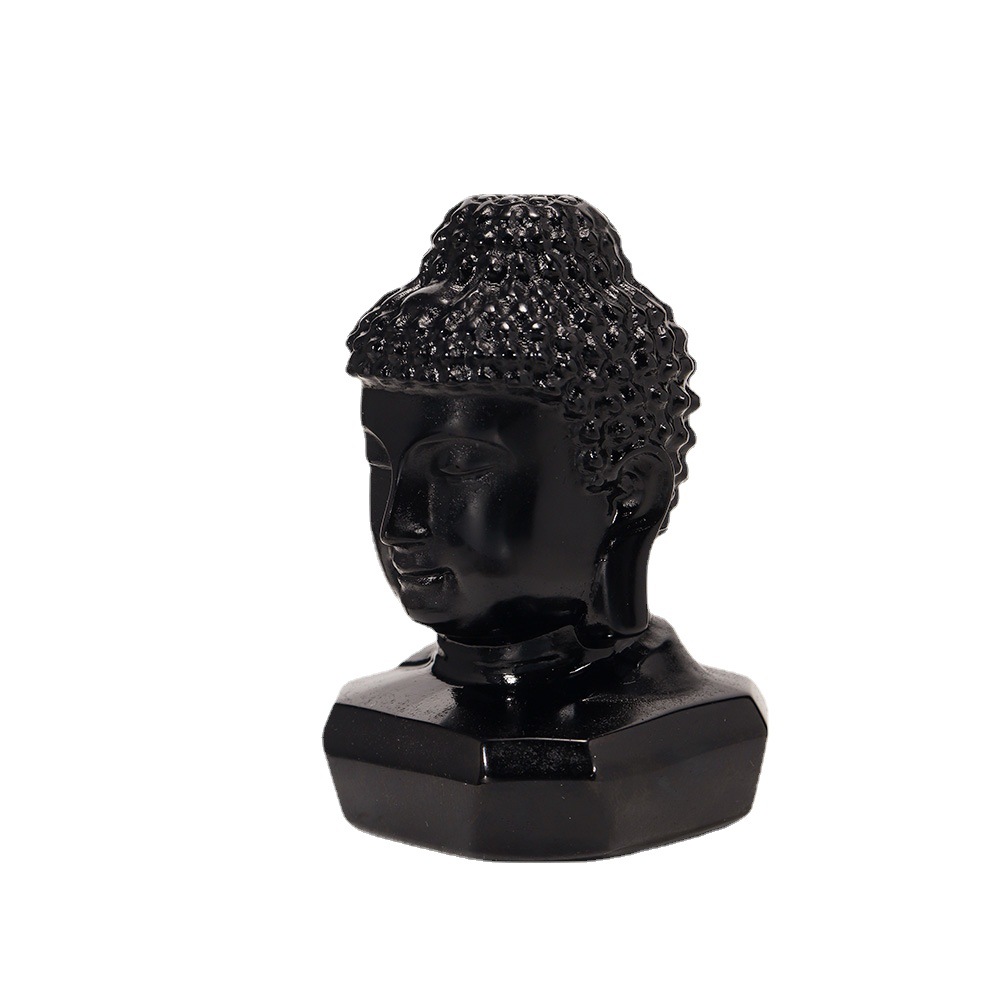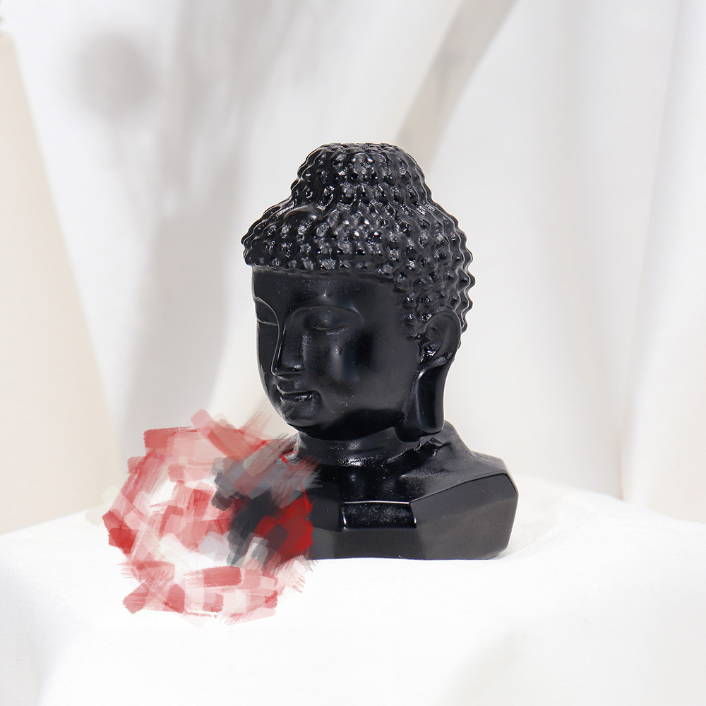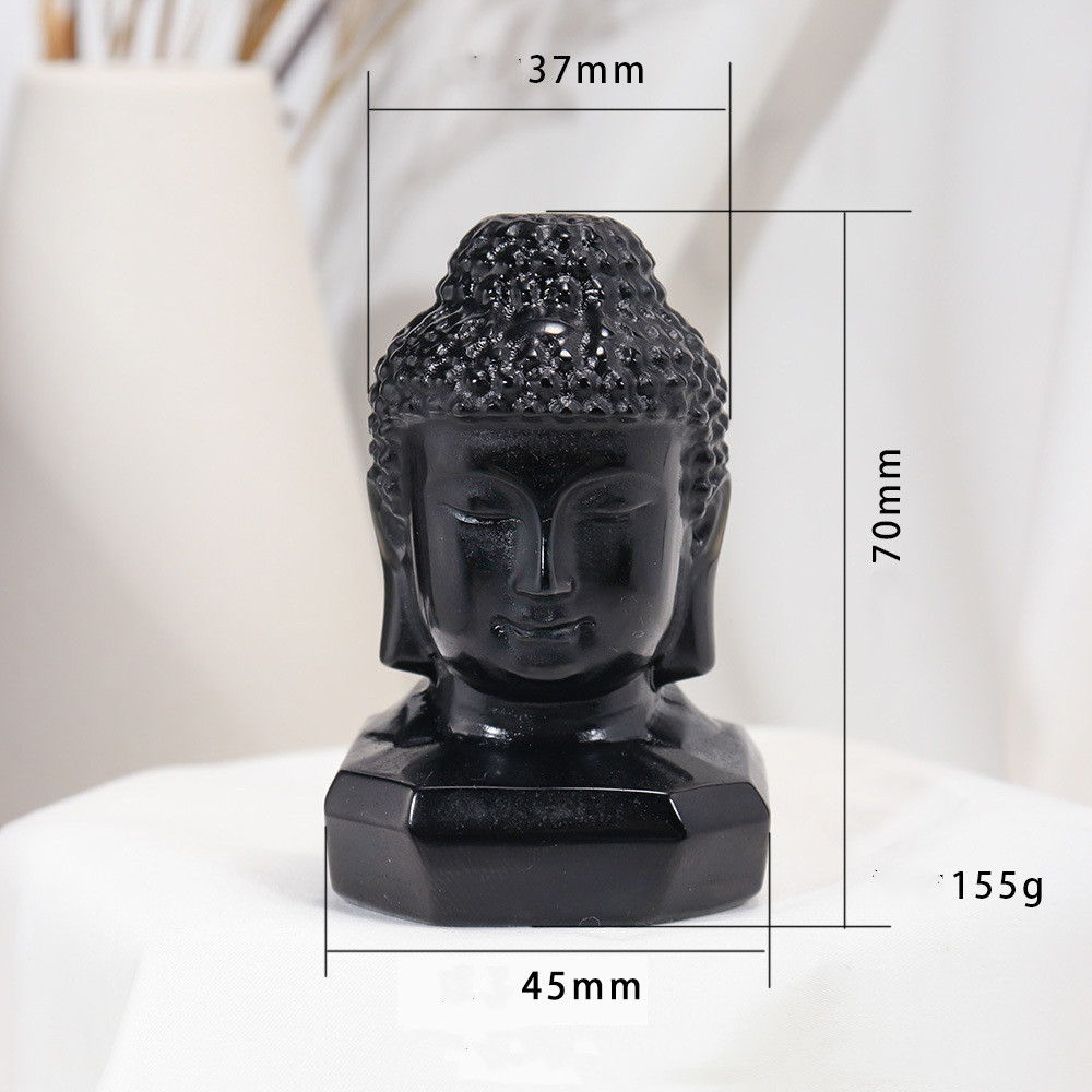 East China Sea Natural Obsidian Buddha Head Hand Polished Stone Ornament