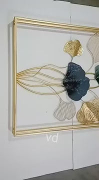 Ginkgo Double Frame Wall Decor Metal Leaf Iron 30 Inch by 60 Inch Rust Free