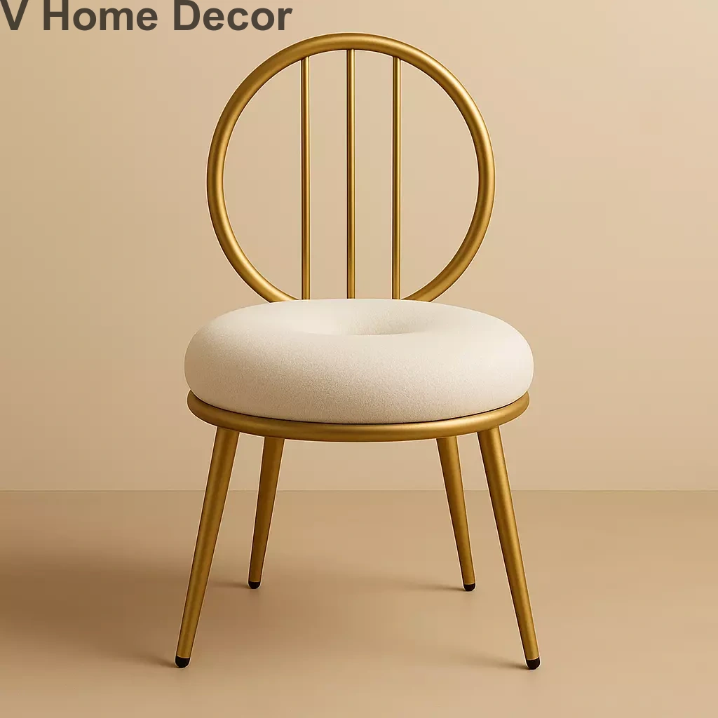 Halo Spindle Puff Chair – Gold Metal Backrest Vanity Chair with Plush Seat | Luxury Accent Seating