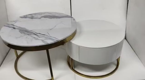 Marble Table Set with MDF Storage Box and Stainless Steel Gold Finish 30 Inch and 24 Inch