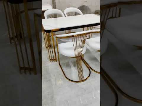 Elevate your dining experience with our stunning White Marble Dining Table Set, perfectly complemented by four elegant stainless steel chairs. This exquisite set combines luxury and functionality, making it an ideal choice for both intimate dinners and lively gatherings.